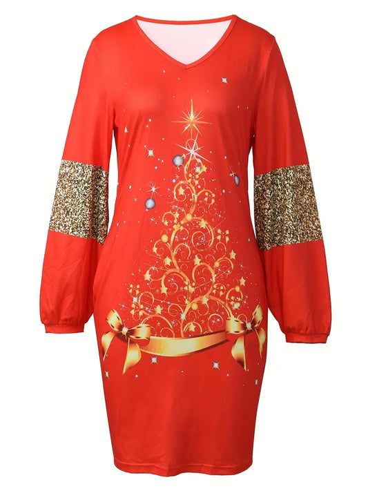 Robe de Noel Élégante avec Manches Pailletées