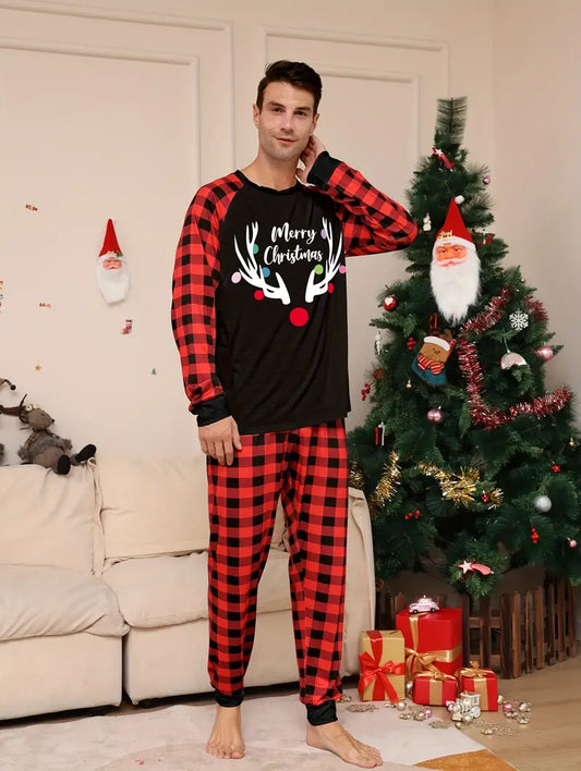 Pyjama de Noel Famille Renne et Carreaux Rouges