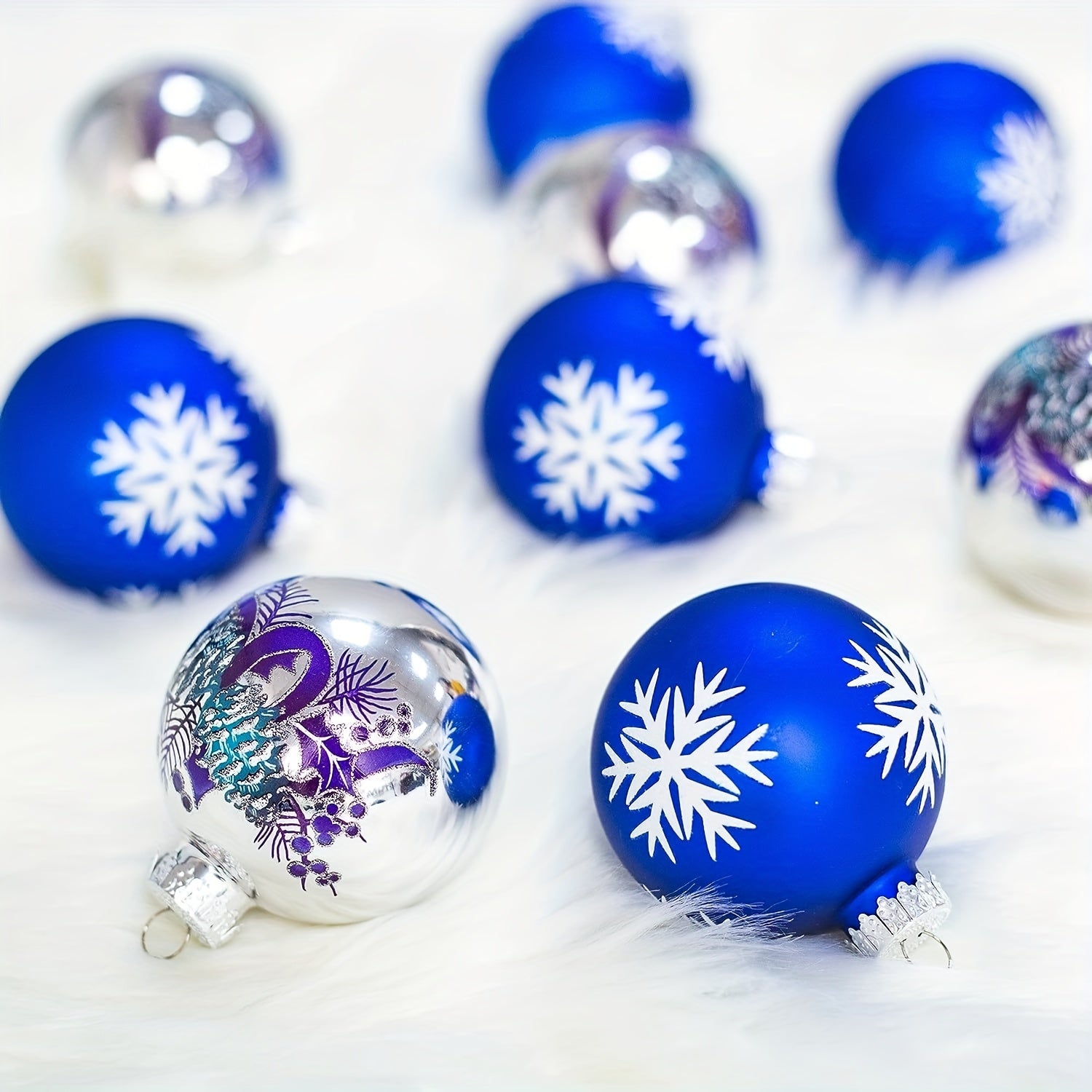 - Contient: Ensemble de 9 boules de Noël en verre bleu, décorées de motifs flocons et de dessins artistiques, parfaites pour ajouter une touche de raffinement à votre décoration de sapin.