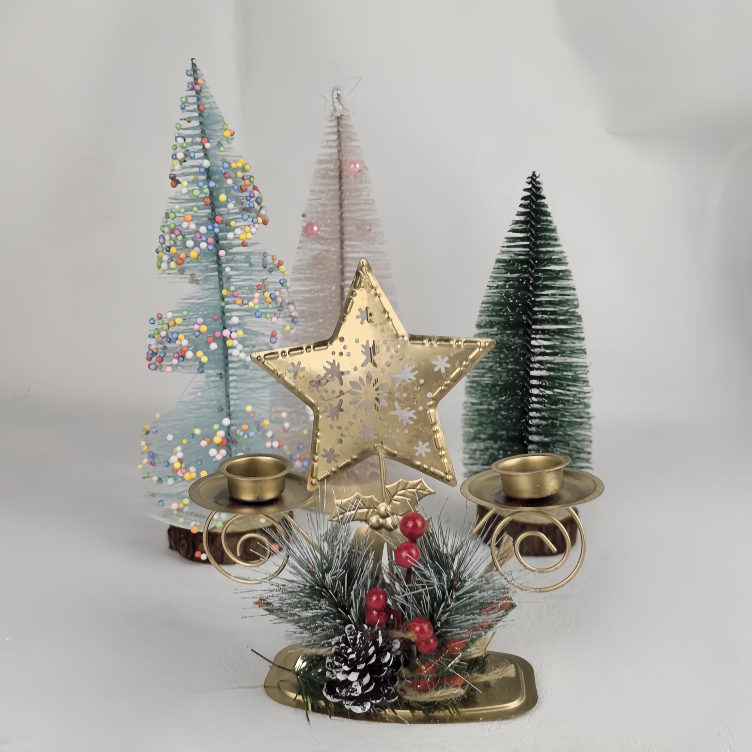Apportez une touche féerique à votre Porte-Bougies Doré avec Thème de Noël. Cet accessoire en métal illuminera votre deco table de noel 2024 avec élégance. Sublimez votre decoration noel interieur en créant une ambiance chaleureuse et festive.