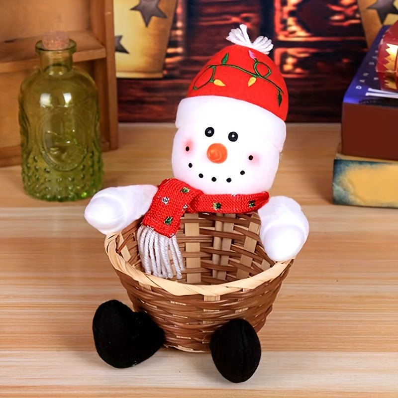 Matériau: Panier en osier tressé à la main avec figurines en tissu doux et motifs Noël.