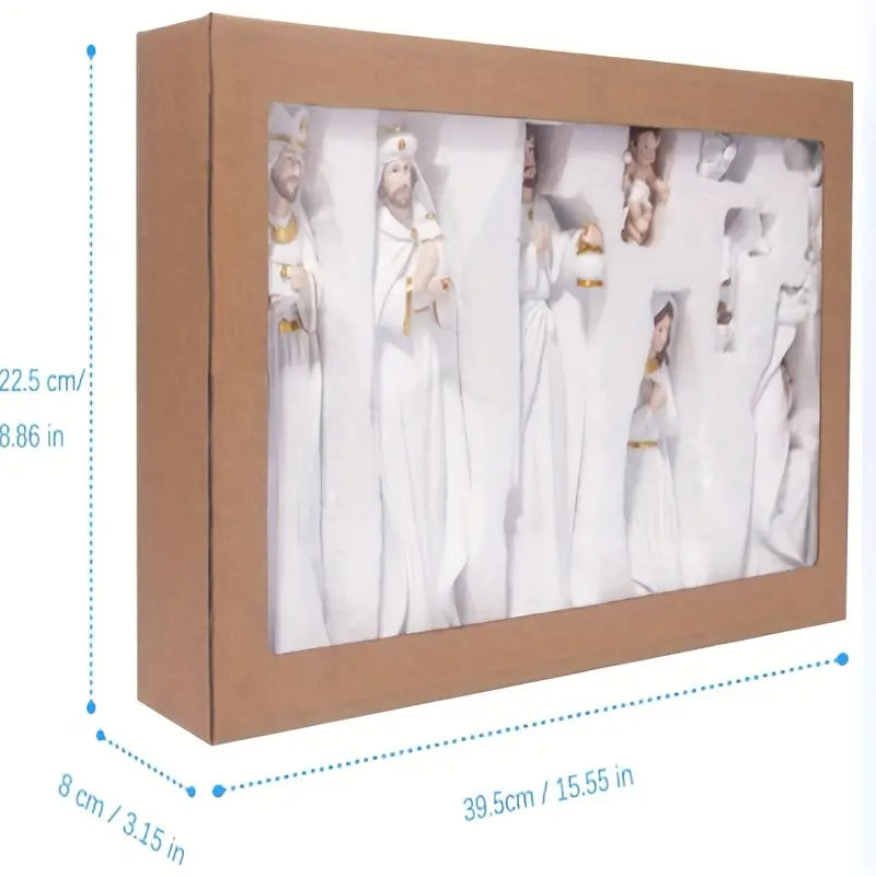 Cette crèche de Noël incarne la pureté de la tradition. Conçue en résine haute qualité, elle présente des détails délicats, représentant la nativité de manière authentique.