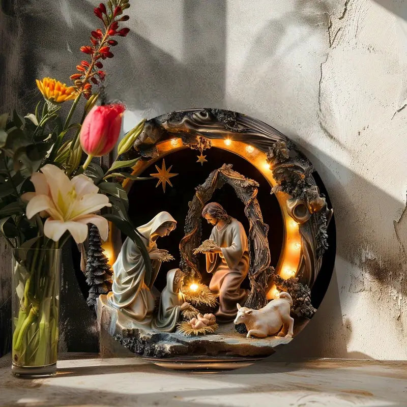 - Motifs: Inspirée par la crèche de Noël classique, cette pièce symbolise l'esprit festif et religieux des fêtes de fin d'année.