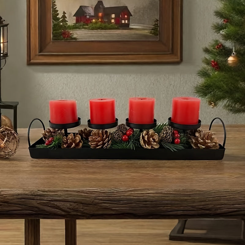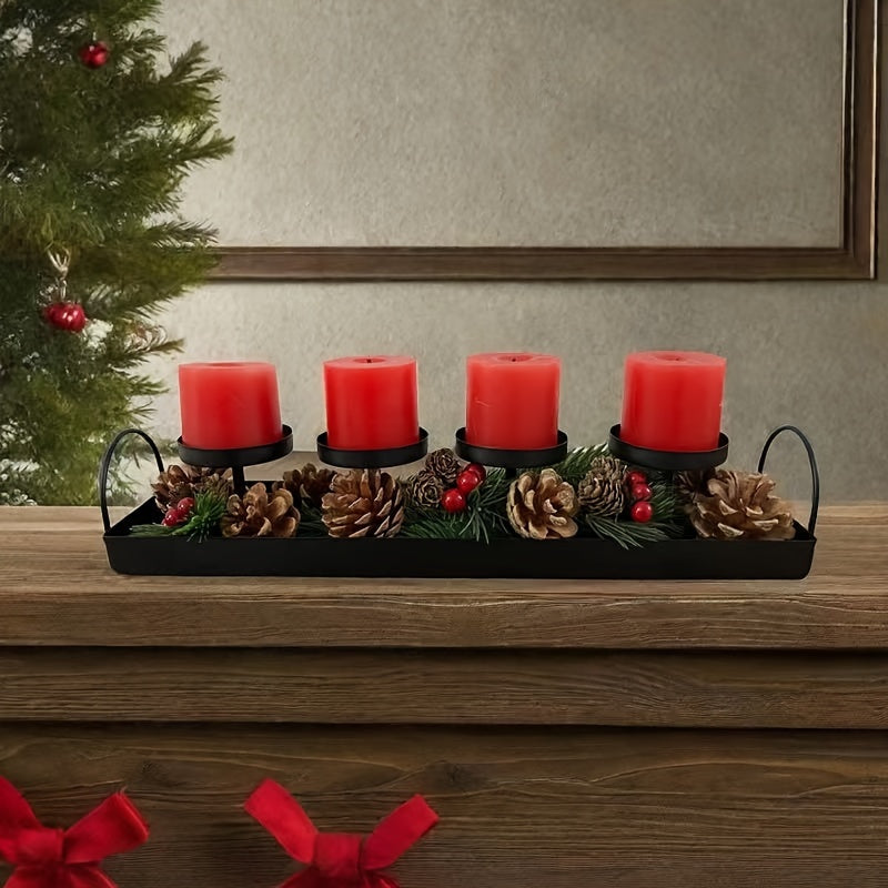 - Composition: Composé de quatre bougies rouges, pommes de pin, baies rouges et un support en métal noir pour une stabilité parfaite.