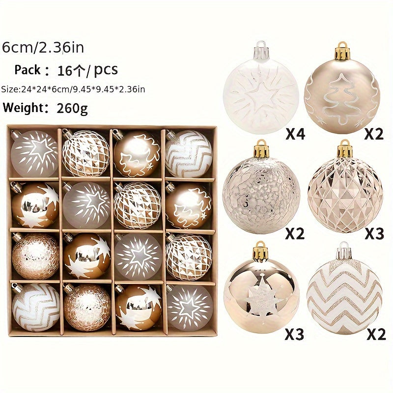 Cet ensemble de Decoration Boule de Noel se compose de 16 boules soigneusement décorées pour égayer votre decoration noel. Chaque boule de noel est finement ornée de motifs festifs en or, rouge, et blanc, capturant l’esprit de Noel. Utilisez ces deco boule de noel pour ajouter une touche de brillance à votre sapin tout en créant une ambiance chaleureuse.