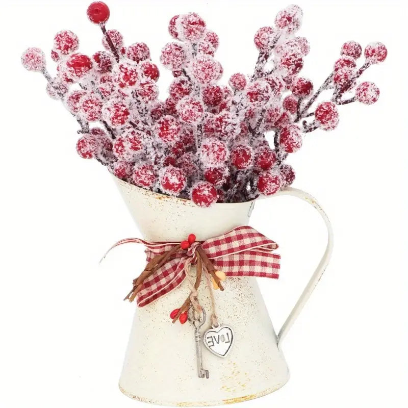 - Contient: Un ensemble de 8 tiges de houx décoratives avec baies rouges enneigées, parfait pour embellir vos bouquets.