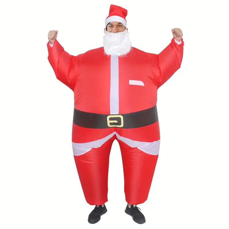 - Motifs: Père Noël gonflable, avec détails de ceinture et veste traditionnelle pour un effet comique garanti.