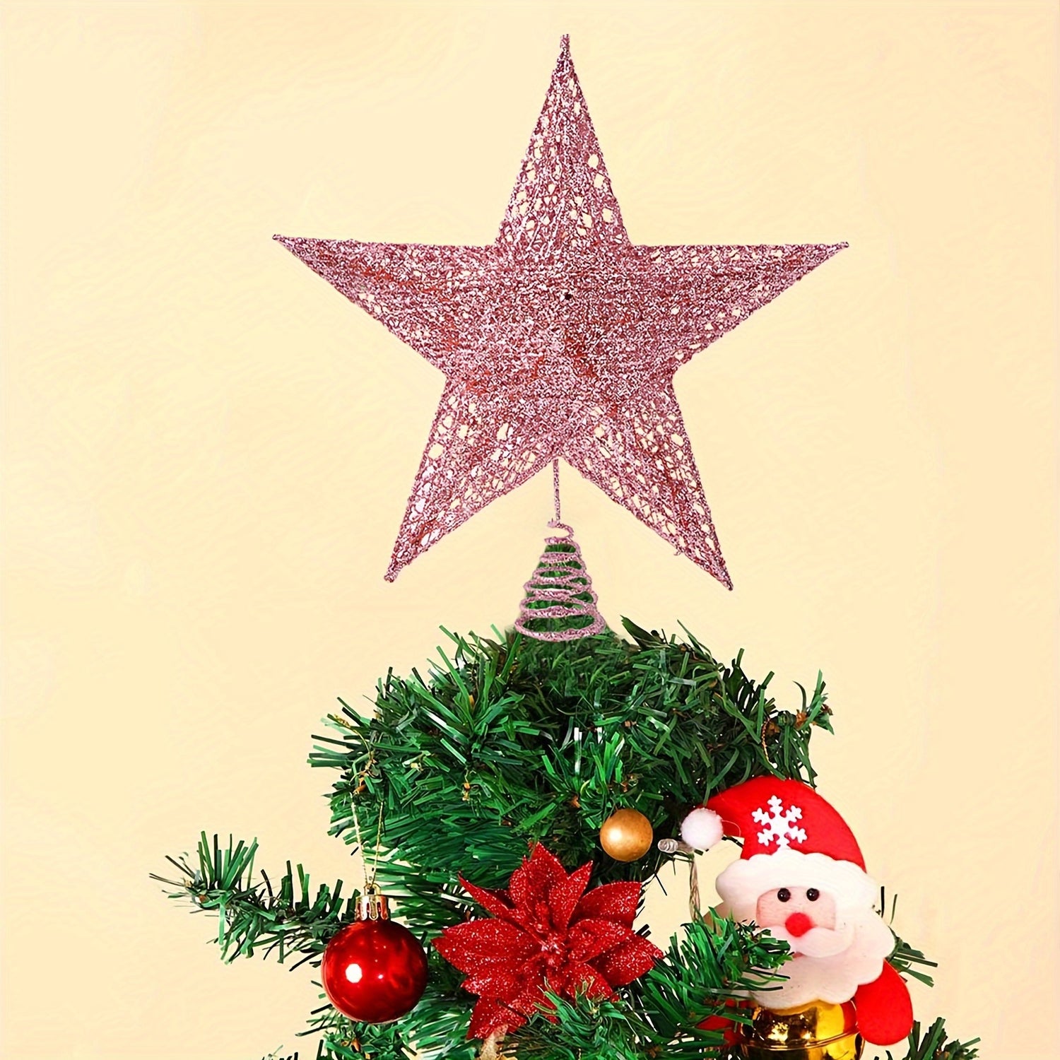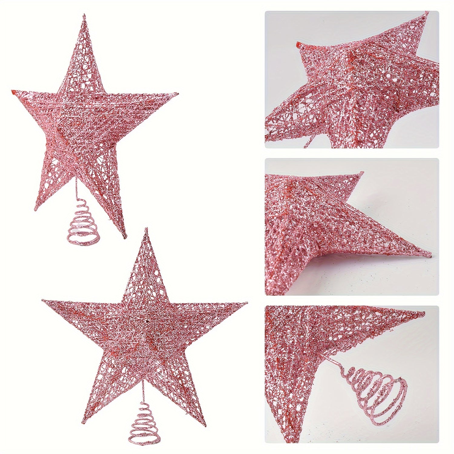 - Matériau: Fabriqué en plastique durable avec un design ajouré et un revêtement pailleté, idéal pour décorer le sommet du sapin.