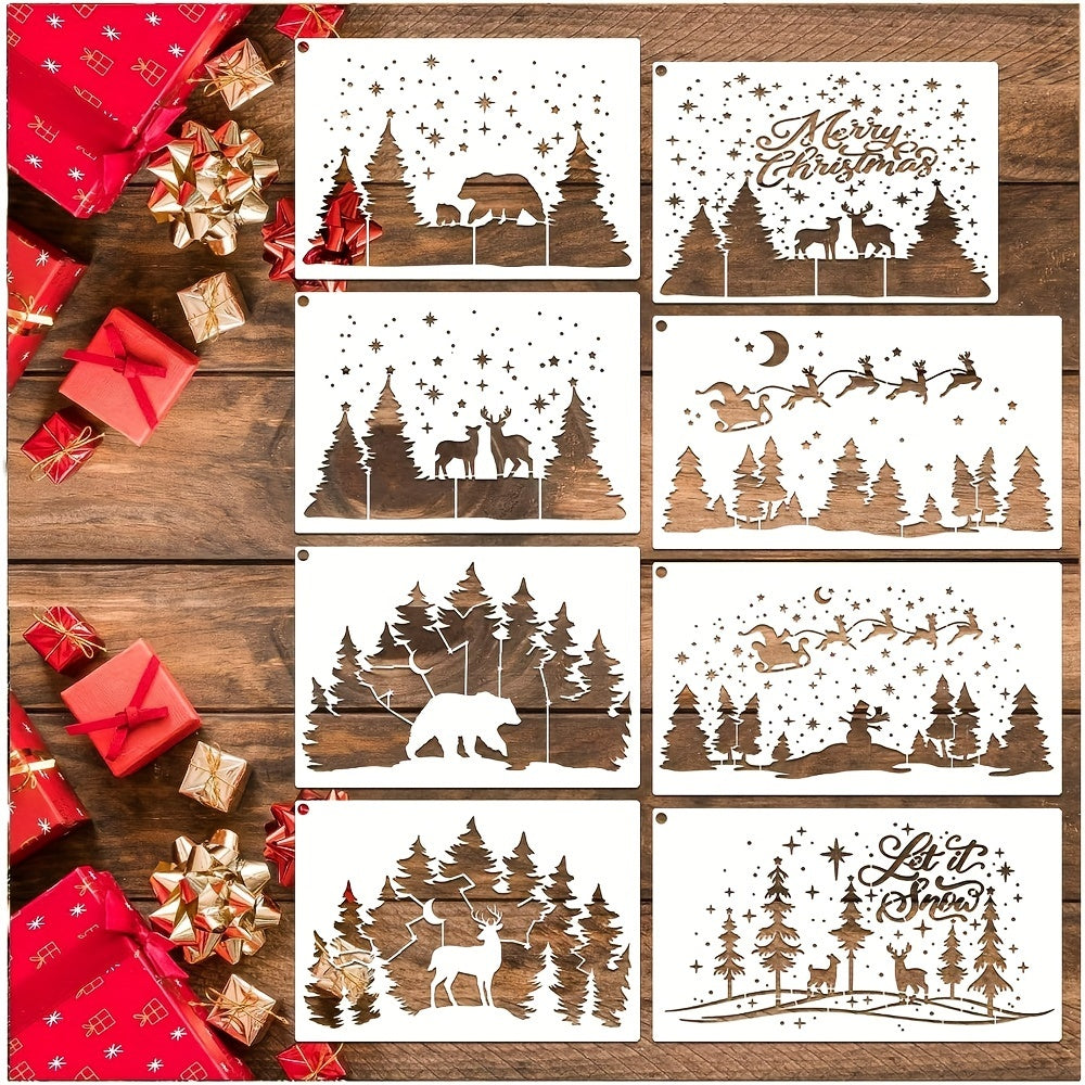 Ces pochoirs de Noël vous permettent d'ajouter une touche créative à votre intérieur. Conçus en plastique résistant, ils vous aideront à dessiner des motifs de forêt élégants, tout en facilitant leur application sur du bois ou d'autres surfaces. Chaque motif inspire la magie des fêtes, transformant votre espace en un lieu enchanté.