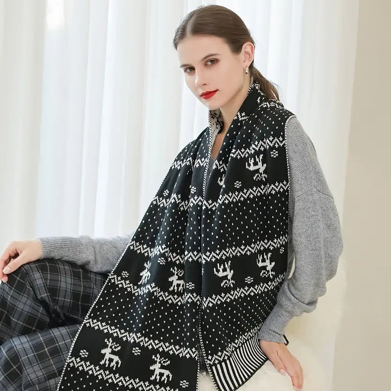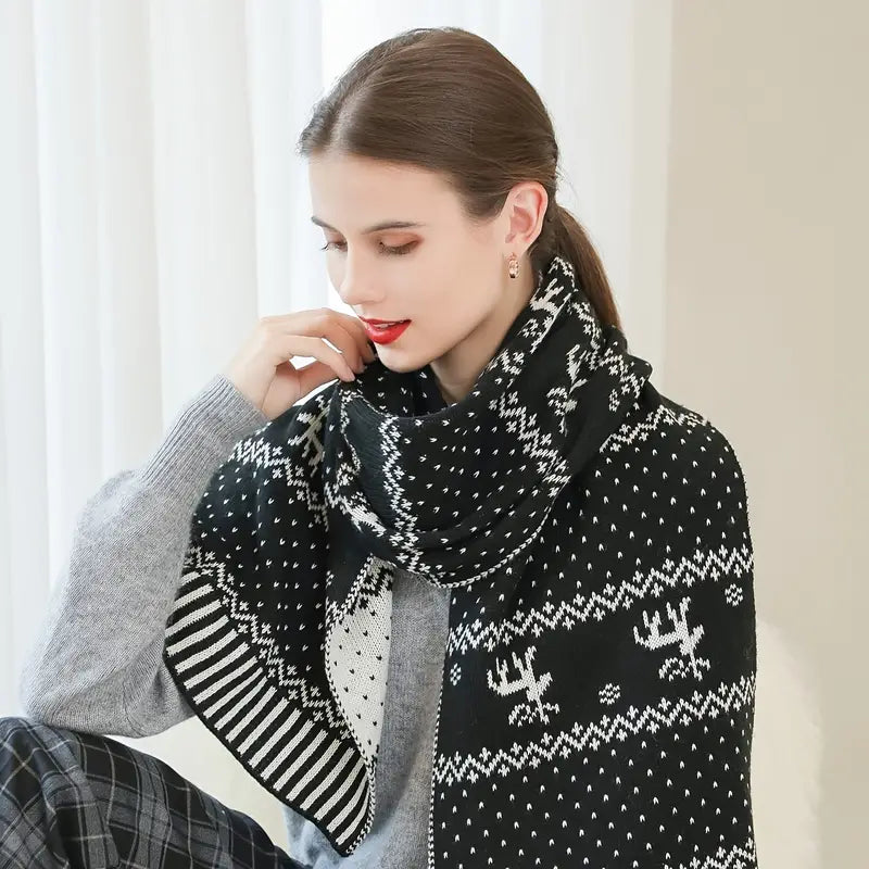 Ajoutez une touche festive avec cette Grande Echarpe De Noel Noir, ornée de motifs animaliers. Légère, coupe-vent et offrant une protection contre la chaleur, lavable à la main, parfaite pour Noël.