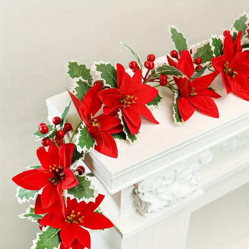 Cette guirlande de Noël ornée de fleurs de Poinsettia est idéale pour créer une ambiance chaleureuse pendant les fêtes de Noël. Avec ses détails soignés et son plastique durable, elle s’intègre facilement à votre décoration de Noël intérieur. Que ce soit suspendue sur le sapin ou accrochée à une cheminée, elle transforme vos espaces en un véritable havre festif.
