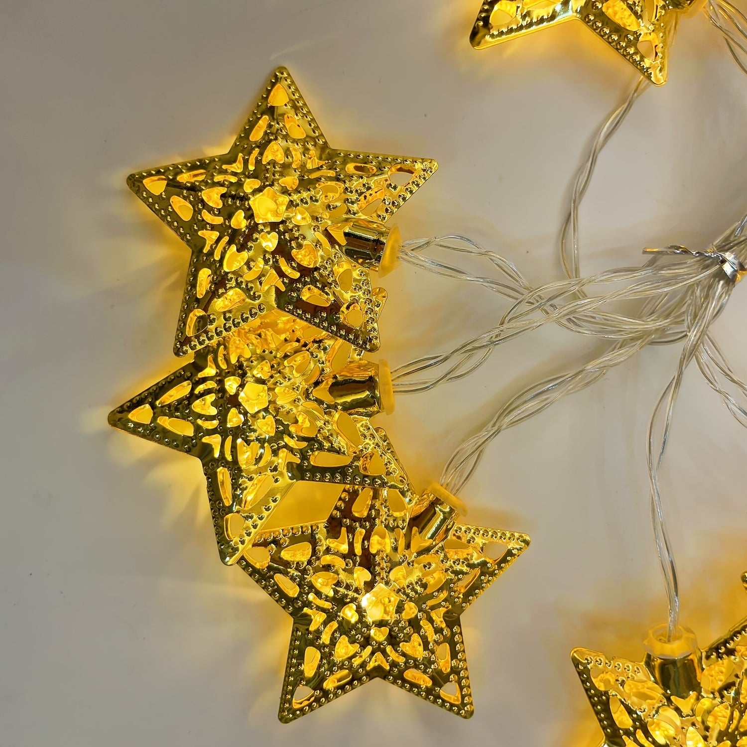 - Contient: 1 guirlande lumineuse de Noël à pile de 1,5 mètre avec étoiles métalliques et lumières LED, idéale pour créer une ambiance chaleureuse.
