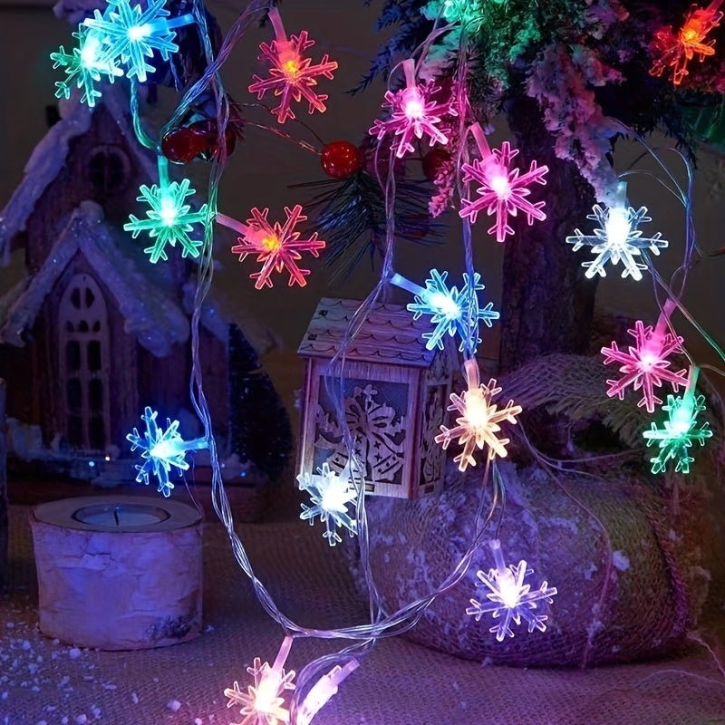 - Motifs: Motifs en forme de flocons de neige lumineux, créant une atmosphère hivernale et enchantée pour les décorations de Noël.