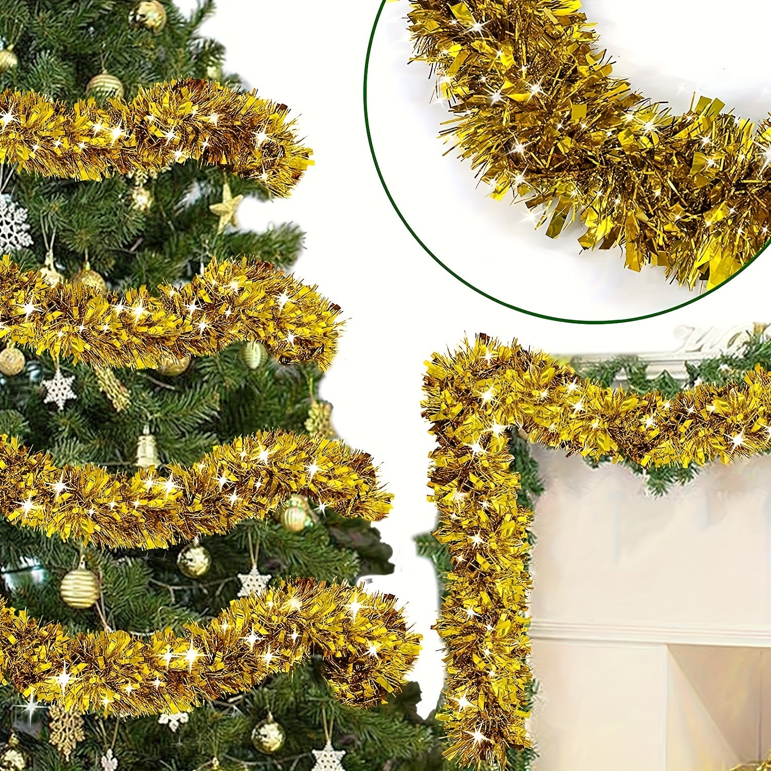 - Matériau: Conçue en plastique PVC brillant, cette guirlande ajoute une touche festive avec ses brins dorés éclatants.