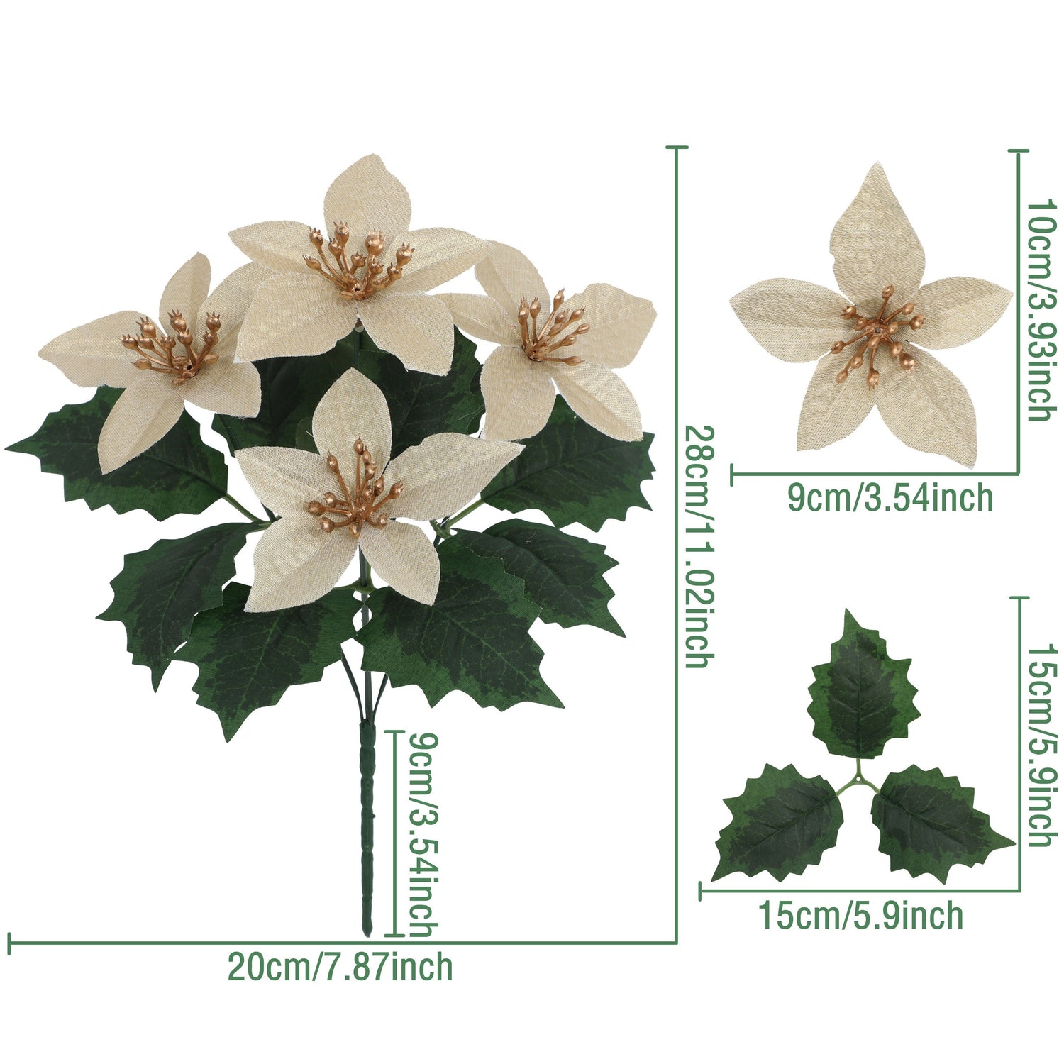 - Matériau: Fabriqué en tissu de haute qualité, imitant des fleurs de poinsettia pour un effet élégant.
