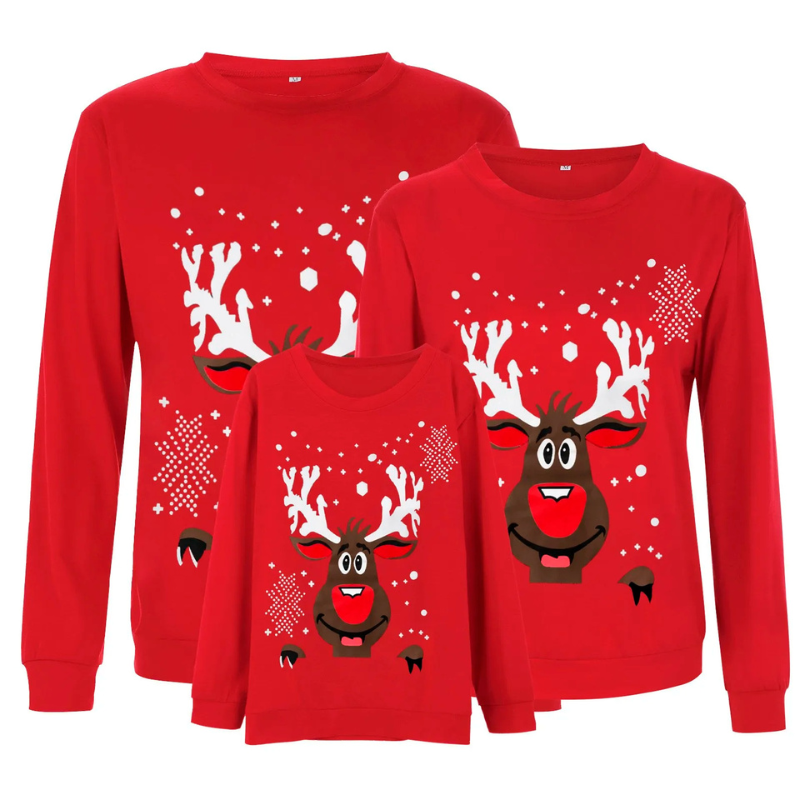 Pull de Noel Assorti Famille Motif Renne Rouge