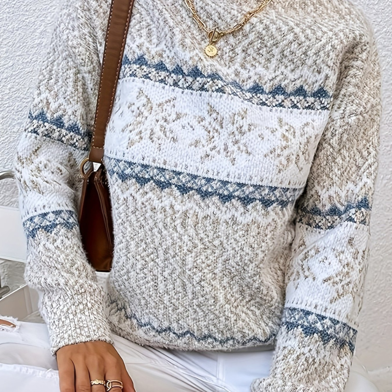 Ce pull de Noël est l'alliance parfaite entre chaleur et style. Le col roulé vous protège du froid tout en ajoutant une touche tendance. Son motif floral apporte une élégance subtile, faisant de ce pull un choix idéal pour les soirées festives. Un incontournable pour rester chaleureuse et chic.