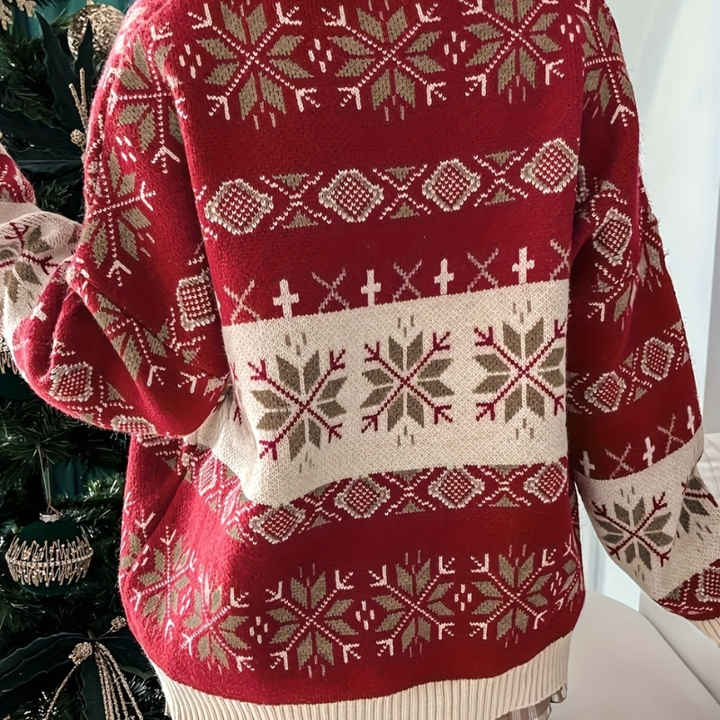 Ce pull en laine incarne l'esprit festif de Noël. Ses motifs traditionnels et sa coupe longue vous plongent dans une ambiance chaleureuse et cosy. Chaque détail a été pensé pour vous offrir un confort inégalé, parfait pour les moments de détente au coin du feu ou les promenades hivernales.
