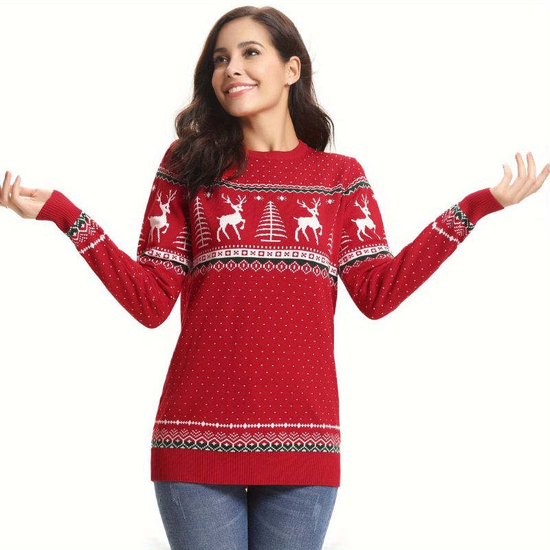 Ce pull de Noël combine chaleur et style. Son tissu en maille garde la chaleur près du corps, vous assurant un confort optimal. La coupe décontractée et le col ras du cou apportent une touche de modernité. Un choix parfait pour rester chic et cosy tout au long des festivités.