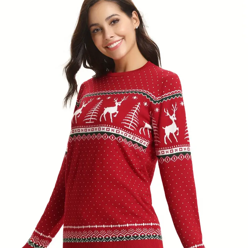 Idéal pour les journées froides de Noël, ce pull décontracté se distingue par son élasticité moyenne qui offre une liberté de mouvement. Son col ras du cou ajoute une touche élégante tout en conservant le confort. C'est le compagnon parfait pour vos promenades hivernales ou pour se blottir près du feu.