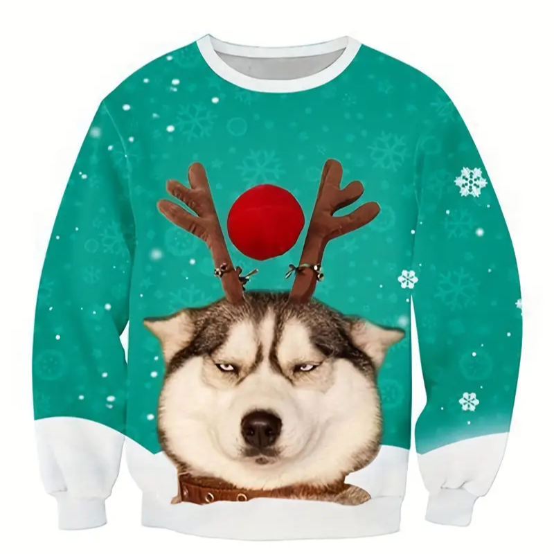 Ce pull de Noël homme incarne parfaitement l’esprit joyeux de Noel. Conçu avec des motifs de Noël ludiques et une coupe loose, il est parfait pour des moments de fête en famille ou entre amis. Son col ras du cou apporte une touche moderne et décontractée, idéale pour rester à l’aise tout au long des festivités.