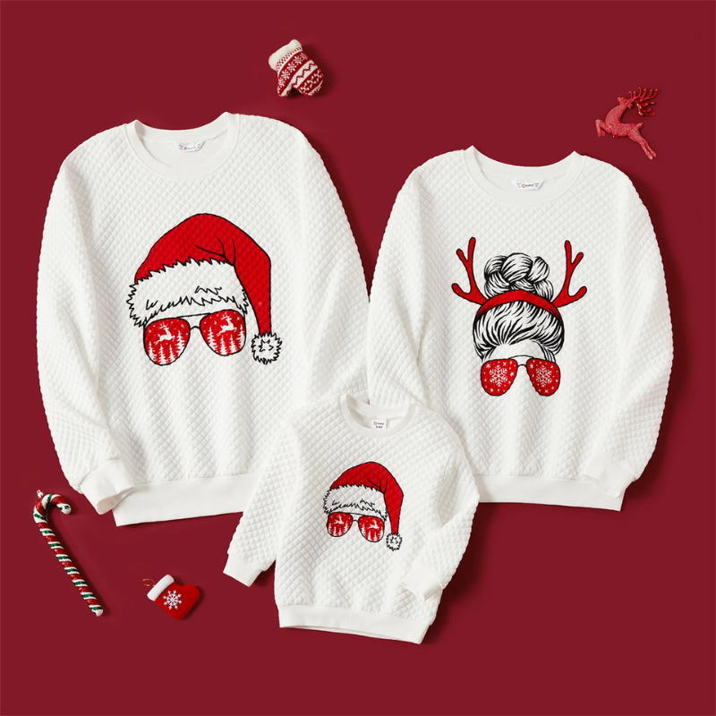 Le Pull de Noel Blanc Pour la Famille allie 62% polyester, 32% coton, 6% élasthanne pour un confort ultime. Son design portrait et sa coupe régulière offrent un look décontracté parfait pour Noel.