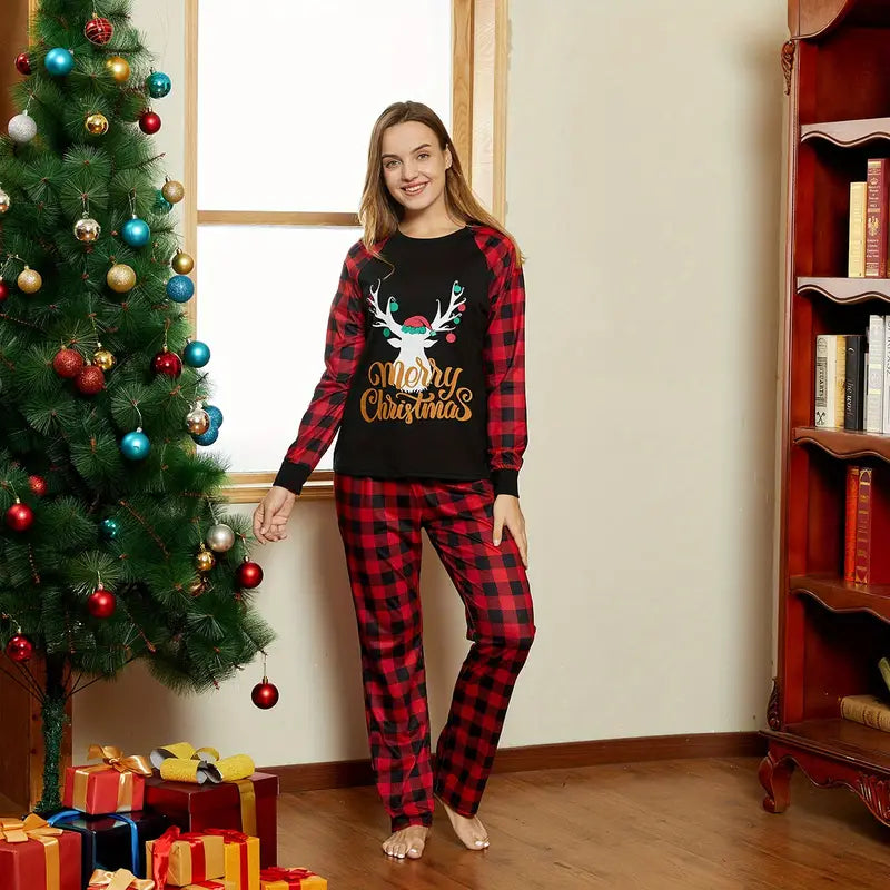 Pyjama de Noel Famille Renne et Carreaux Rouges
