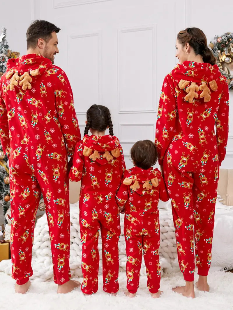 Ce Pyjama Familial de Noel Renne Festive est idéal pour célébrer les fêtes en famille. Conçu en 100% polyester, il est légèrement extensible et se démarque par ses motifs Noël festifs. Avec sa combinaison à capuche, il allie confort et style.