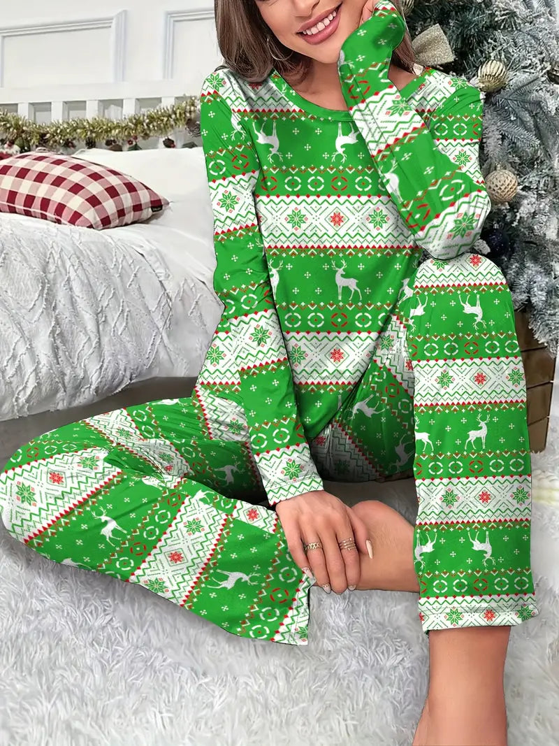 Cet ensemble long aux volants festifs est parfait pour conjuguer confort et élégance pendant les fêtes. Les motifs Noël apportent une ambiance chaleureuse à vos soirées d'hiver. Grâce à sa micro-élasticité, vous restez à l'aise tout en étant prête à célébrer chaque instant magique de Noel.