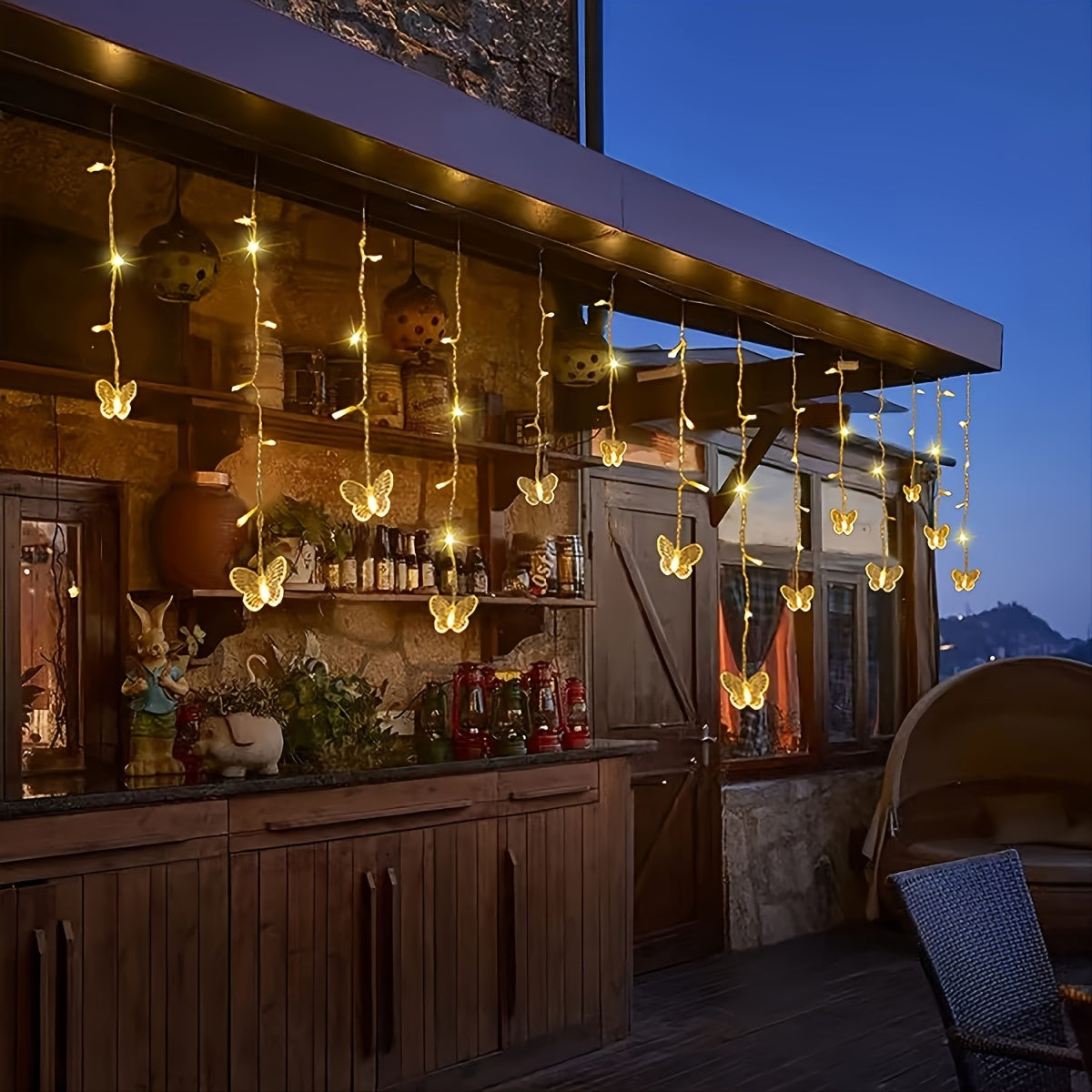 Le rideau lumineux ajoute un éclat subtil et met en valeur chaque coin de votre terrasse ou balcon, ajoutant une touche de charme féerique.