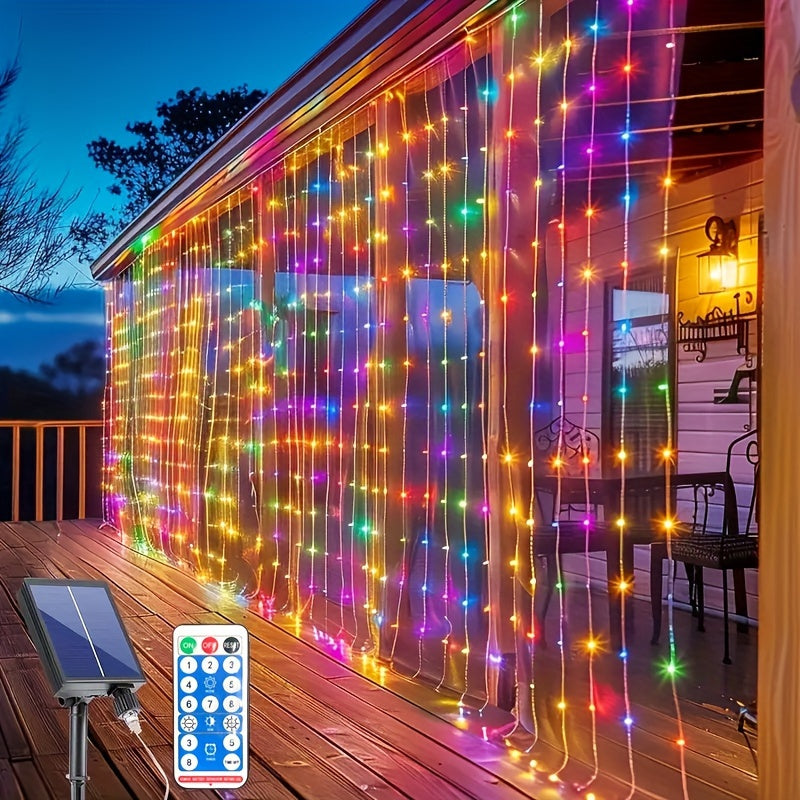 - Contient: 1 rideau lumineux de Noël solaire de 300 LEDs mesurant 3 mètres par 3 mètres, idéal pour une décoration colorée et festive.