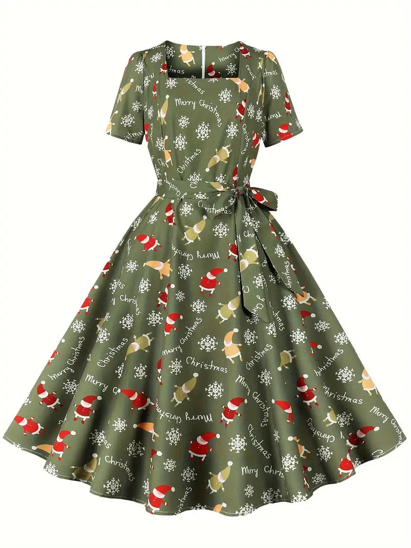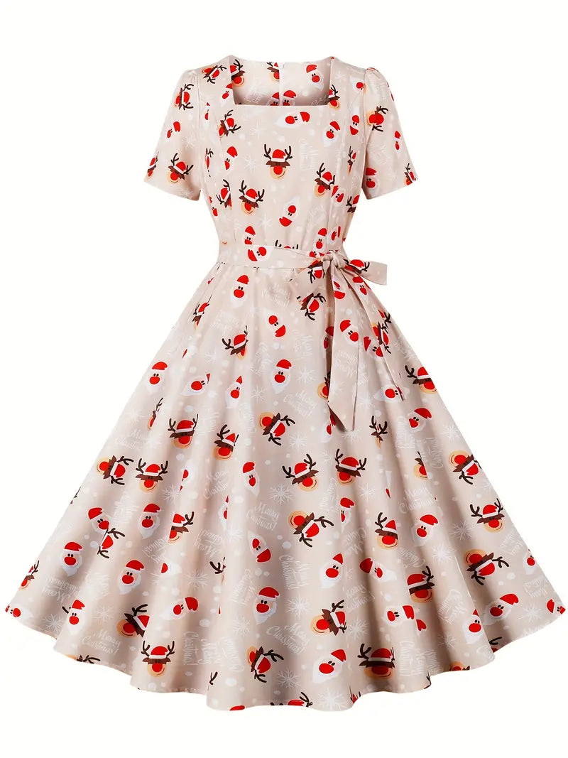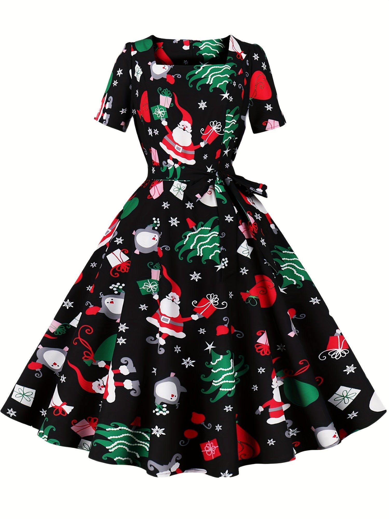 Découvrez cette Robe de Noel Style Années 50 en 65% polyester, 35% coton, alliant élégance et confort avec ses motifs Noël festifs. Sa ceinture met en valeur la silhouette, tandis que son entretien est lavable en machine.
