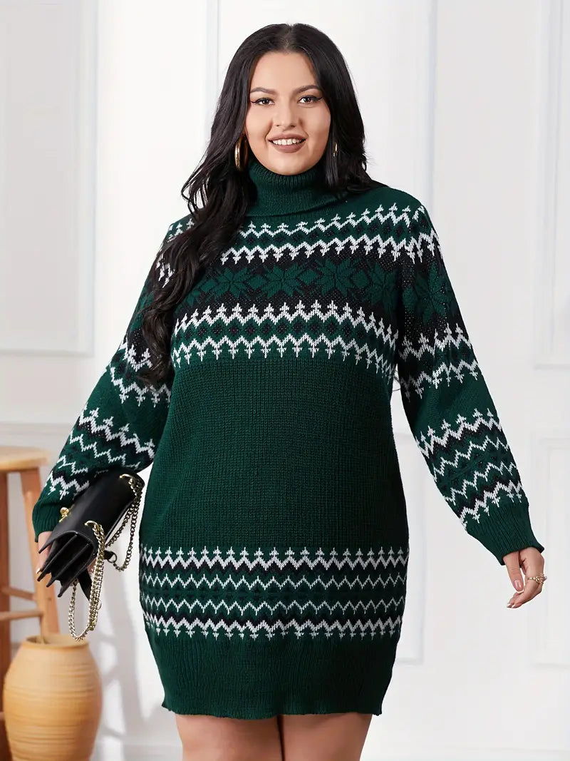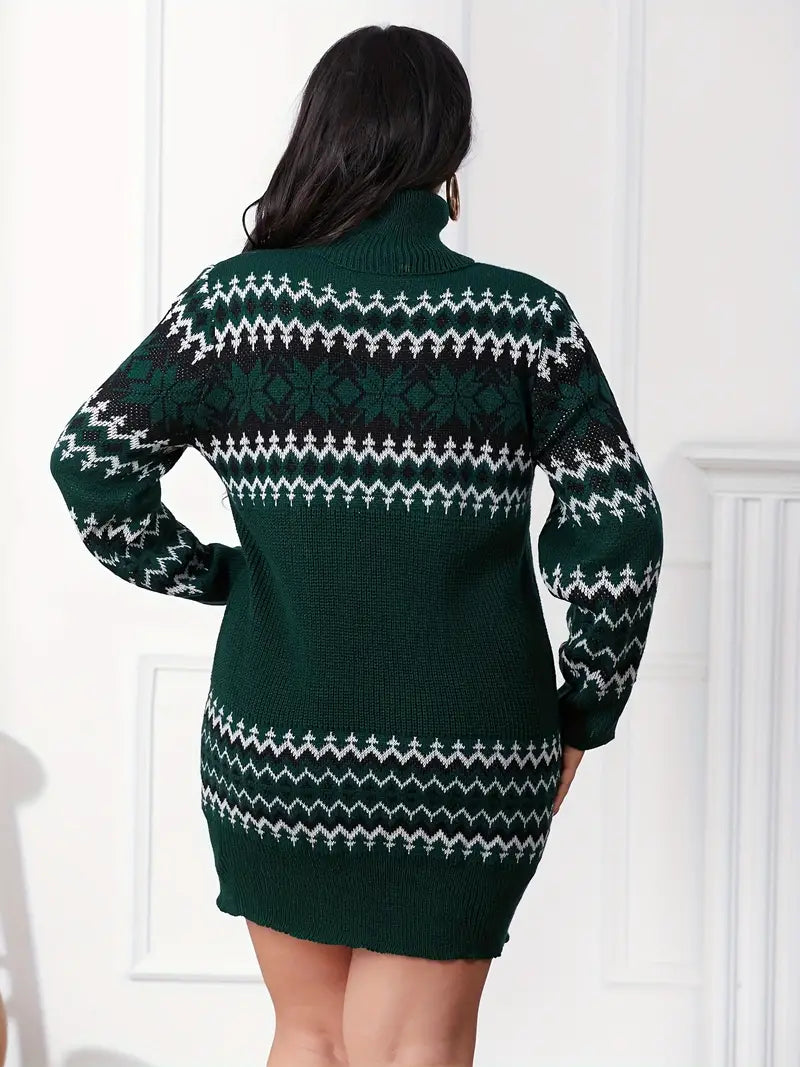 Cette robe de Noel est un incontournable pour célébrer avec style. Avec ses motifs festifs et son col roulé, elle vous enveloppe de douceur et de chaleur. Le mélange du bloc de couleur et du tissu en maille crée un design moderne et élégant, idéal pour l’hiver.