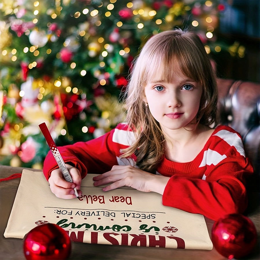 Cette hotte du Père Noël est idéale pour créer une decoration Noel qui fait rêver. Avec ses motifs inspirés des lettres postales du Pôle Nord, elle apporte une touche authentique et amusante.