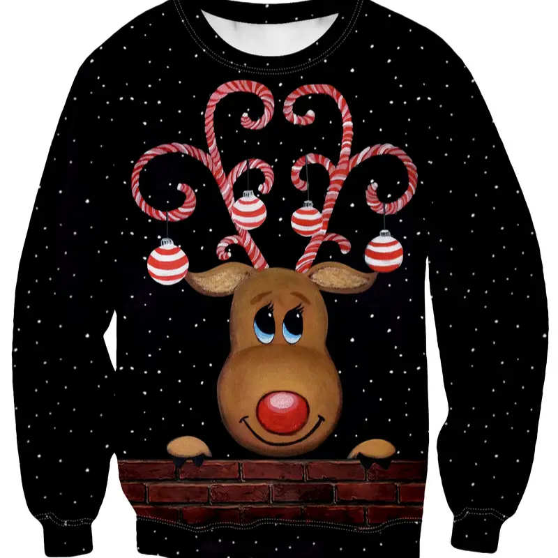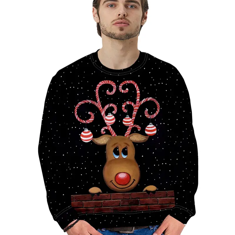 Plongez dans la magie de Noel avec ce Sweat de Noel Homme avec Renne et Décorations Sucrées pour Homme. Conçu en 92% polyester et 8% élasthanne, il est entièrement imprimé avec des motifs festifs.