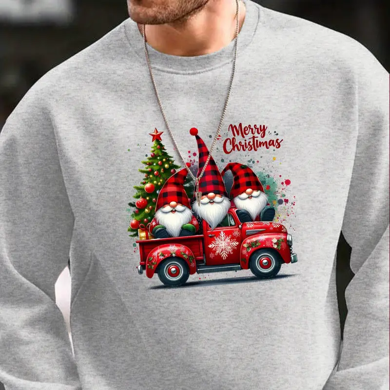 Sweat Noel Homme Camion Rouge avec Gnomes