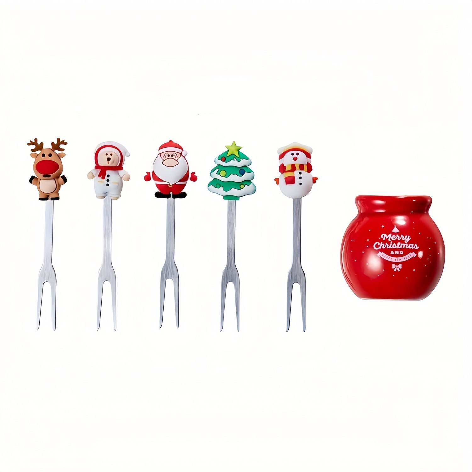- Contient: Ensemble de cinq fourchettes de Noël avec personnages festifs, parfait pour accompagner vos repas de fête.